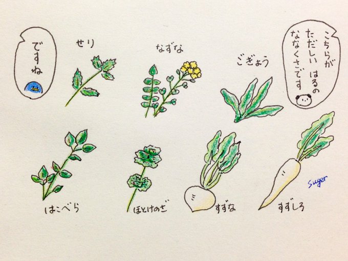 つゆこ イラストレーター בטוויטר 昨年の七草イラスト 七草の日 人日の節句
